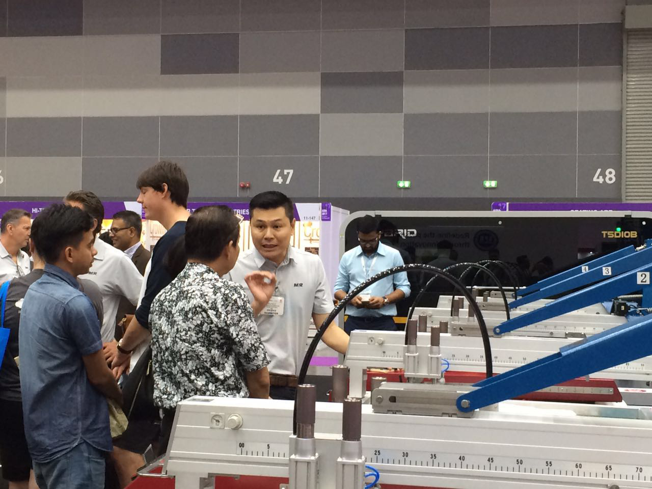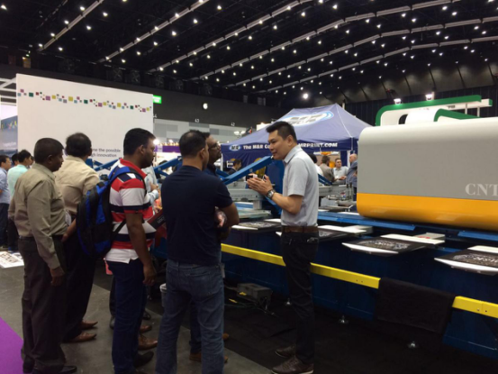 對于VictoryOne®來說,今天最“長臉”的應(yīng)該還是得到展會現(xiàn)場的各位客戶的認(rèn)可,“誠拓出品,必屬精品”,來參觀VictoryOne®的其中一位可是重量級嘉賓了。他是泰國內(nèi)閣成員之一,泰國商業(yè)部副部長頌提叻(Sontirat Sontijirawong),當(dāng)天早上,他在其他泰國高級官員陪同下來到了VictoryOne®展臺,親切的慰問了展臺的工作人員,并饒有興致參觀VictoryOne®,仔細(xì)了解VictoryOne®的產(chǎn)品性能以及產(chǎn)能等各方面的信息,對誠拓?cái)?shù)碼的制造工藝與科研實(shí)力機(jī)遇了很高的好評。