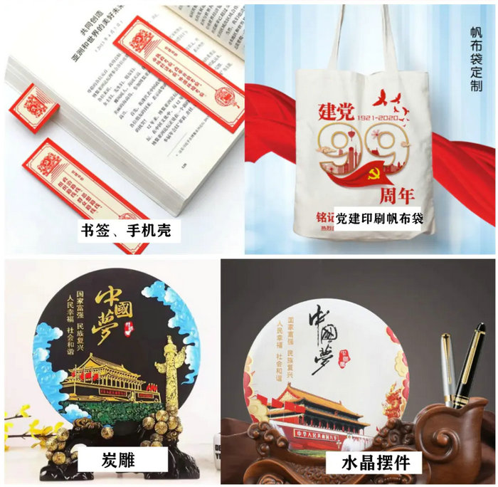 除了傳統(tǒng)的宣傳媒介,各種印有黨慶主題圖案的紀(jì)念品,也存在很大的需求。這對(duì)工藝品、精品、禮品的生產(chǎn)廠商來說,也是一個(gè)難得的業(yè)務(wù)的增長點(diǎn)。工業(yè)UV打印機(jī)在這塊自然也成為制作這些產(chǎn)品的利器。