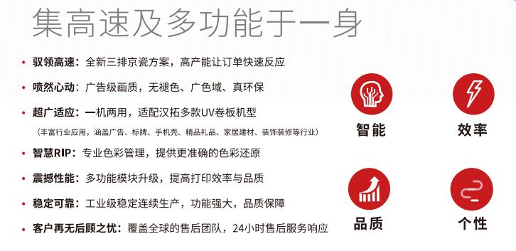 2021年廣州迪培思春季廣告展上,漢拓?cái)?shù)碼推出全新的京瓷噴頭應(yīng)用解決方案—三排京瓷,多功能模塊升級(jí),提高印刷效率和質(zhì)量適用于漢拓多款UV卷板一體打印機(jī),涵蓋廣告、標(biāo)牌、手機(jī)外殼、精品禮品、家居建材、裝飾等行業(yè)。這是漢拓UV打印機(jī)在京瓷噴頭應(yīng)用升級(jí)上的又一個(gè)成功案例。